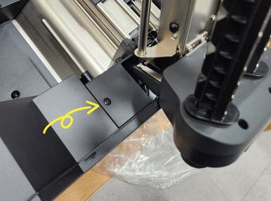 커터 스탠드 하단에 볼트 연결 구멍이 보이도록 위치를 조정 해 줍니다.