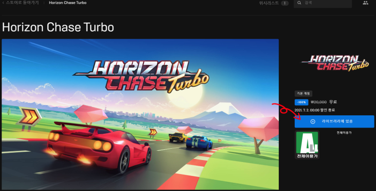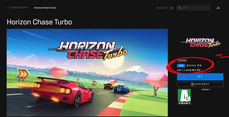 Horizon Chase Turbo 는 2만원에 판매하고 있는데 행사기간에는 무료 입니다.