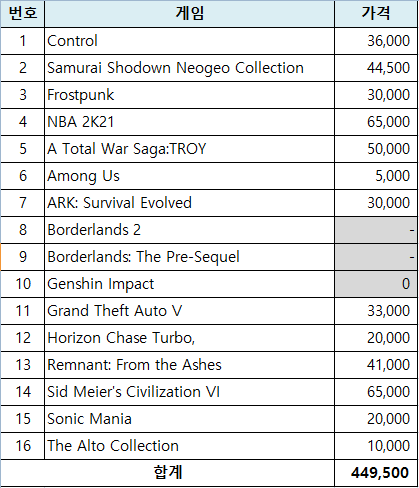 갑자기 무료로 받은 게임을 정가로 구입했을때 가격이 궁금해져서 계산해 봤는데 45만원이네요