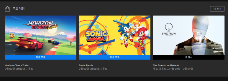 이번 주에는 Horizon Chase Turbo, Sonic Mania 2가지 게임을 7월 2일 까지 무료로 배포합니다.