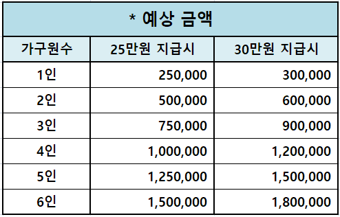 “1인당 25만~30만원" 으로 책정될 것이라고 합니다.