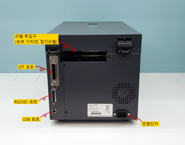 제품 뒷면에는 라벨을 외부에서 라벨을 투입할 수 있는 투입구가 있고