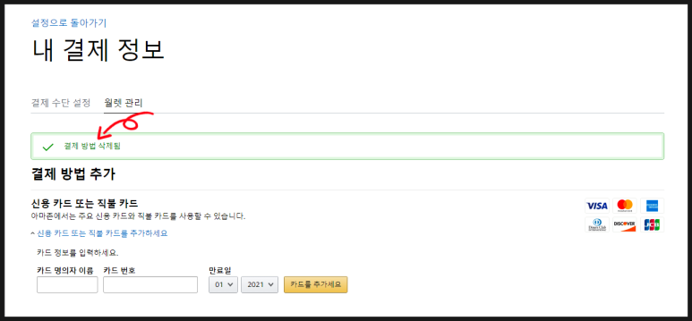 카드 삭제가 완료 되었습니다.