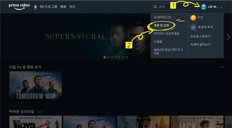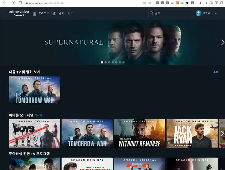 아마존 프라임 비디오 홈페이지 로그인합니다.