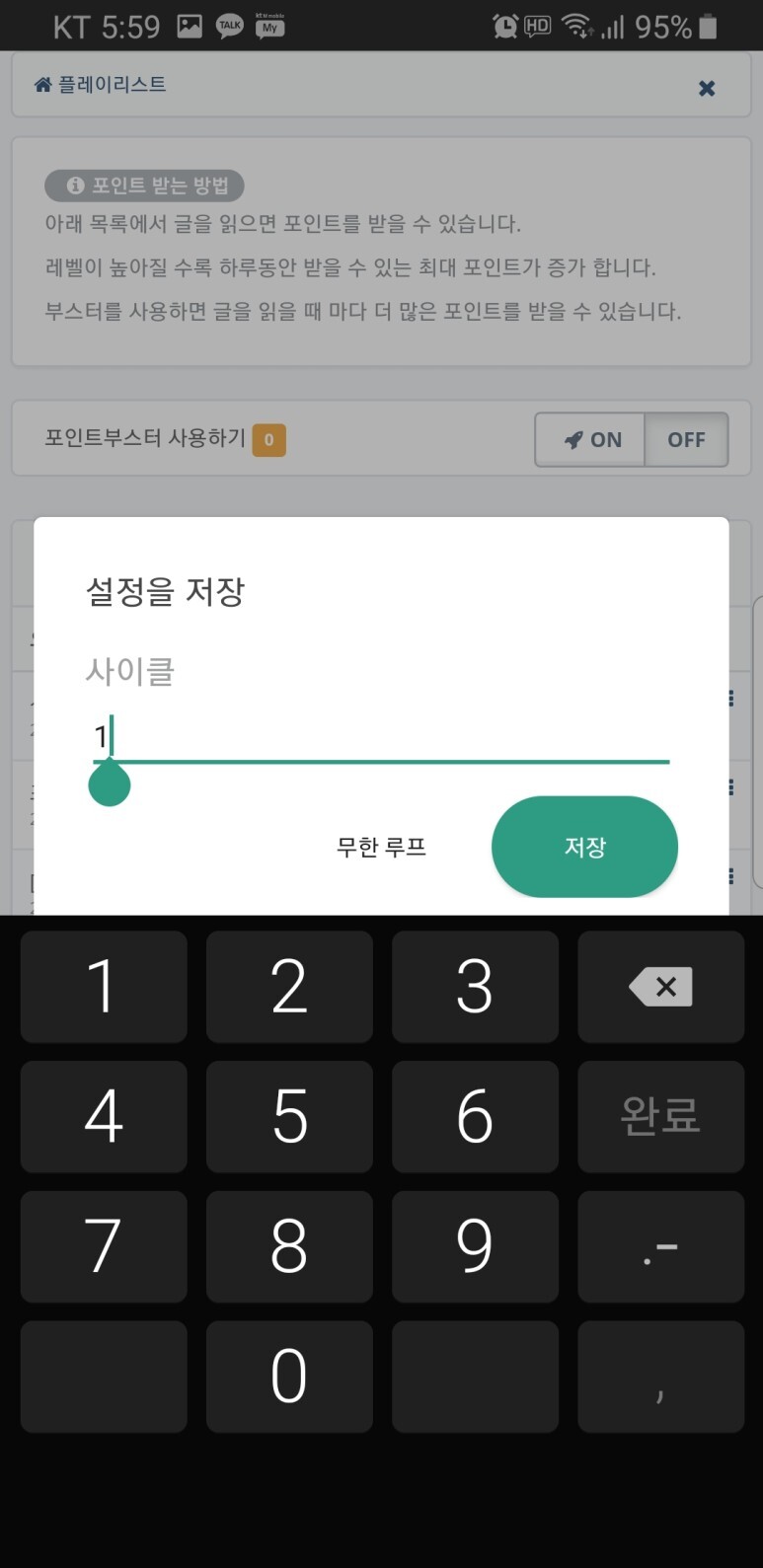 계속 반복하시려면 무한루프를 클릭합니다.