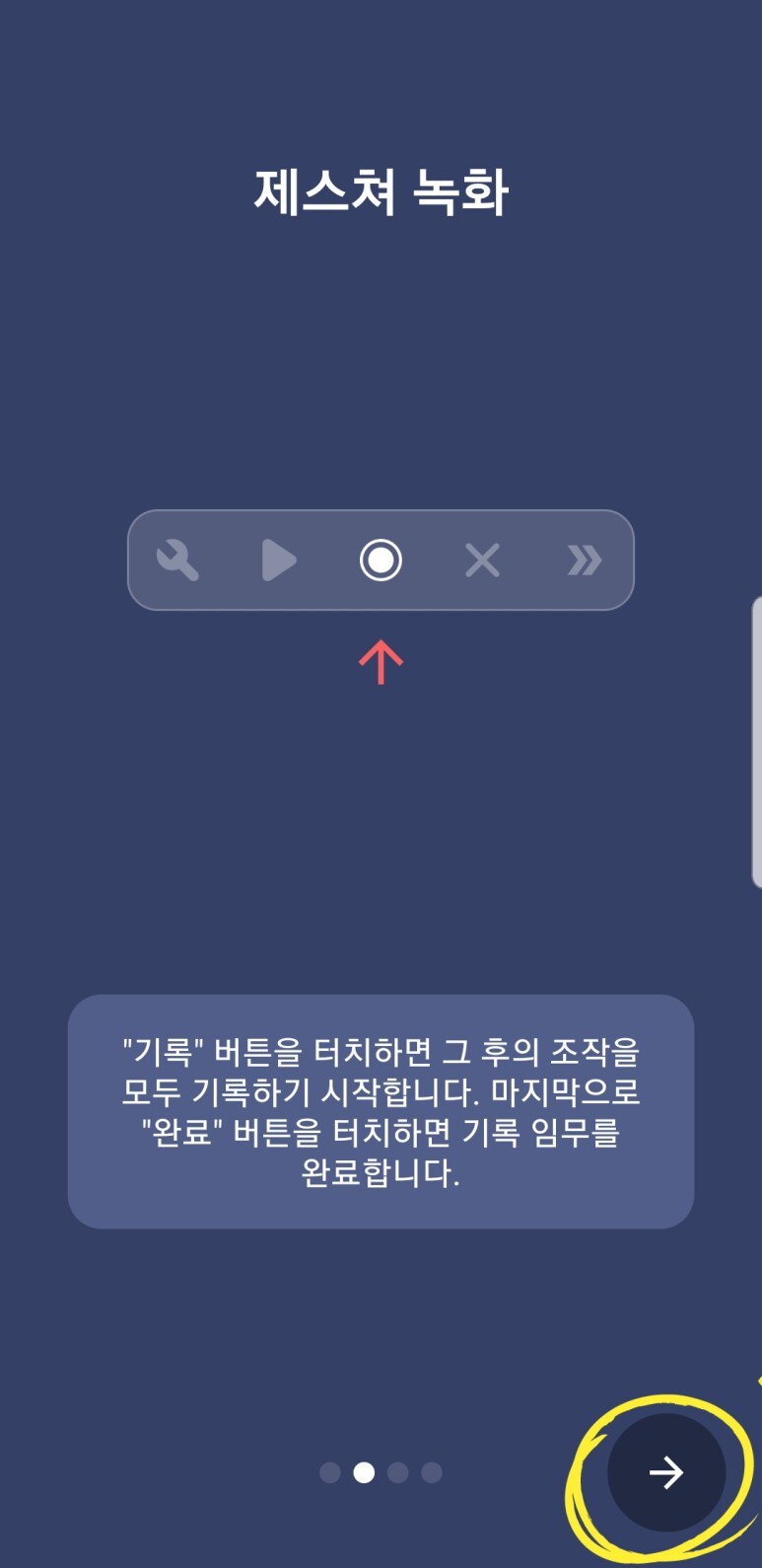 최초 실행시 어플 설명 화면이 나옵니다. 화살표 버튼을 계속 눌러 스킵합니다.