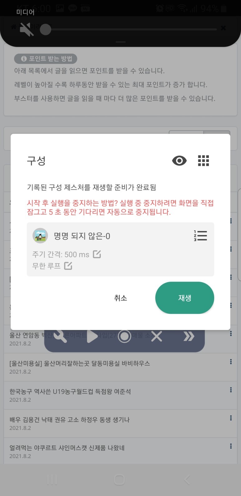 마우스 매크로 어플을 이용하여 사용자가 설정한 대로 클릭, 뒤로가기 드래그등을 무한반복 할 수 있습니다.