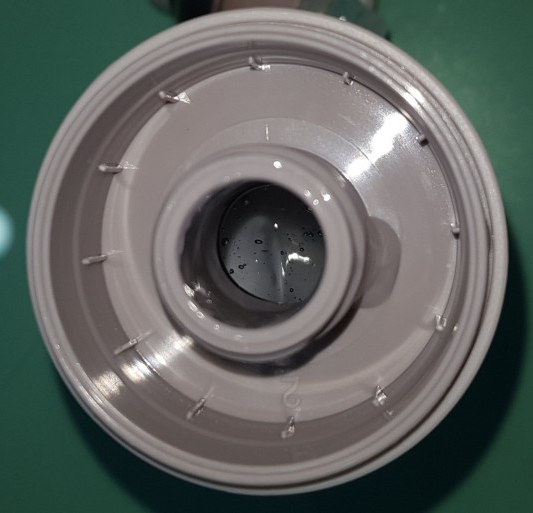뚜껑을 다시 결합하고 열심히 펌핑하여 용기내부에 있는 공기를 빼다 보면 손소독제가 나오기 시작합니다.