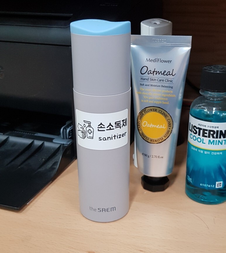 용기에 넣을 제품은 코로나 19로 인해 자주 사용하고 있는 손소독제 입니다.